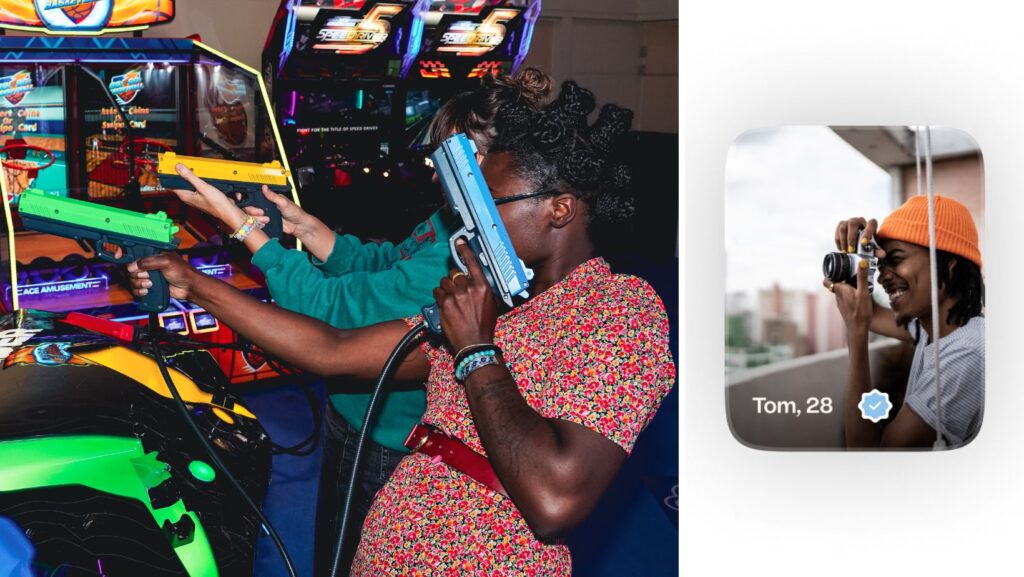 - ¡Explora perfiles! Con sólo configurar tus preferencias, empezarás a ver personas que tienes cerca o te has cruzado en el camino. Desliza hacia la derecha si te gusta alguien y hacia la izquierda si no. Si estás interesado en alguien, toca su foto para ver más detalles.