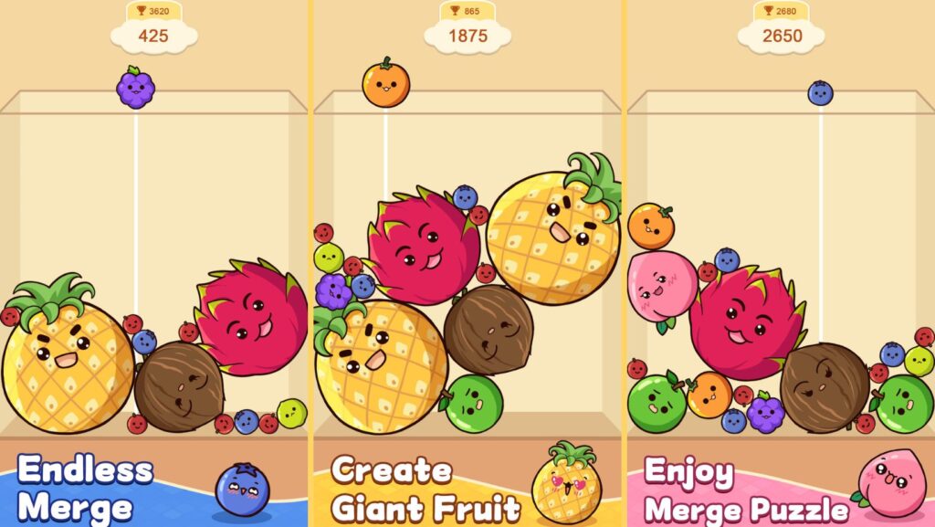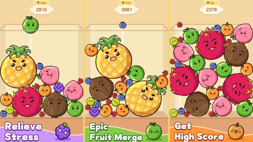 - Mejora la concentración y la planificación💫: Piensa con anticipación y decide qué frutas fusionar para aprovechar mejor el espacio.