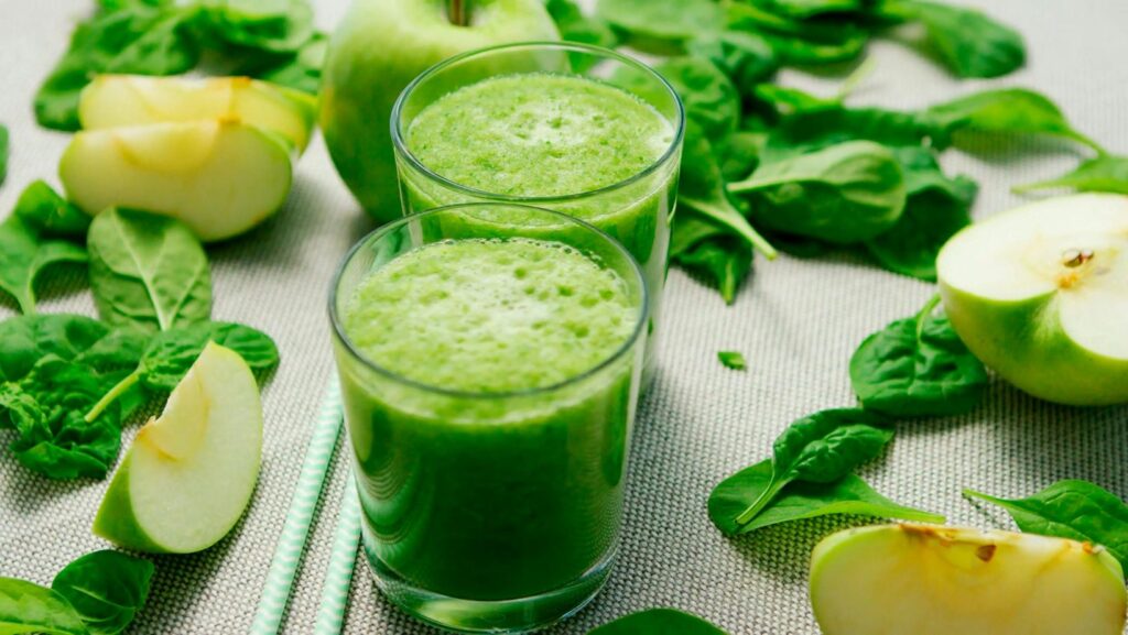 Principalmente, la espinaca puede aportarte hierro y está llena de vitaminas A, C, K y varias del complejo B. Mientras que la manzana, es rica en fibra, antioxidantes y vitamina C.