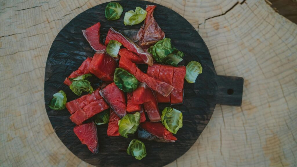 - 50% de proteína (pollo, carne magra, pescado)